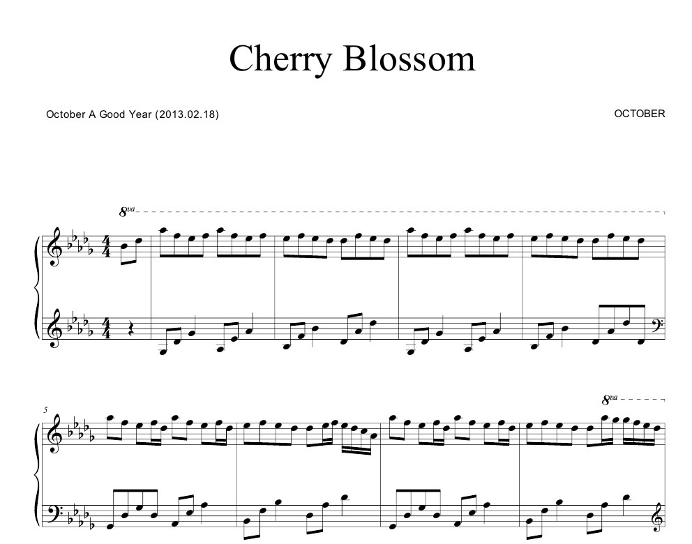 Cherry Blossom - OCTOBER [sheet music]$4$4https://schema.org/InStockusdkeysmoakeysmoa1 ratingI want this!Size193 KBLength3 pagesAdd to wishlist New wishlistShareShare on XShare on Facebook Copy linkCopy product URLRatings5(1 rating)155 stars100%4 stars0%3 stars0%2 stars0%1 star0%